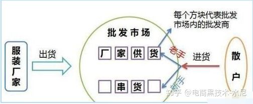 5.批发市场解决了两个痛点:一是通过厂家,把需要成批量进的货分摊给各个批发商,解决了代理商无法从厂家直接进货的痛点。通过批发商排除掉一些旧款及不好卖的款,简单的为代理商做了第一轮筛选。二是按照厂家进的货分类,不同批发商针对的客户人群不同,从而达到减轻代理商盲目挑选款式的痛点。
