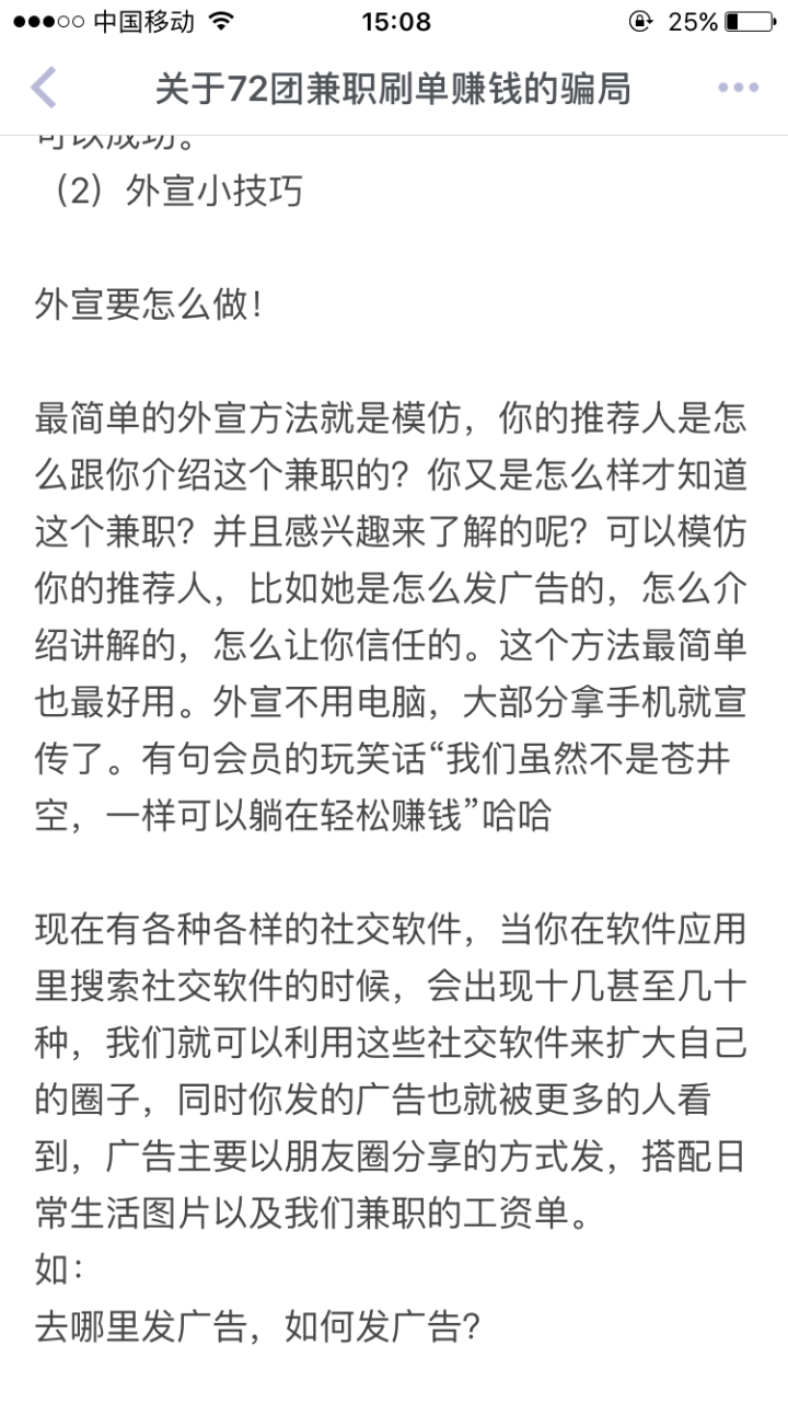 淘宝刷单团队,到底是不是传销? 爱开淘 二月 18, 2019 业务发展 4 评论 2200 围观 我是一名大一学生,在一个经济高度发达的城市上大学,之前因为生活费不够,所以我就找兼职的那种工作,想赚点小钱,但是由于学校位置偏远,加上时间紧促以及语言问题等,导致很多工作都无法胜任,后来发现朋友圈里有人在做某宝刷单,而且听说赚的很多,我也想试试,于是交了160的入会费,但我进去之后感觉,这个东西其实就是网络传销,而且毫无任何保障,结果今天,一个高中同学,在发这个,我就和他理论了一下,但他坚定的认为…