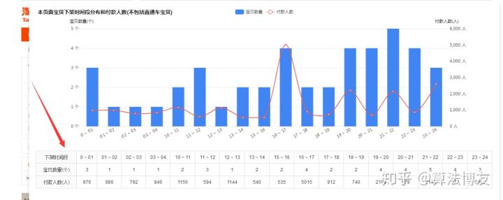 蓝色柱形图代表下架宝贝数量,橙色曲线代表付款人数,那么曲线越高,柱形图越低,就是最好的下架时间。