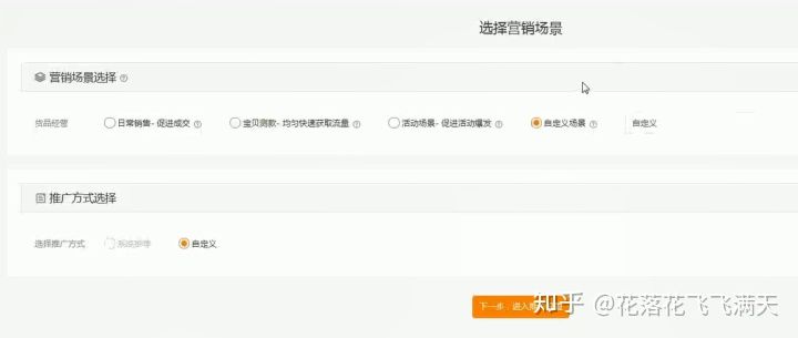 然后设置营销场景,测图测款下,选择自定义场景,不要去选择其他的,然后下一步进入推广设置!