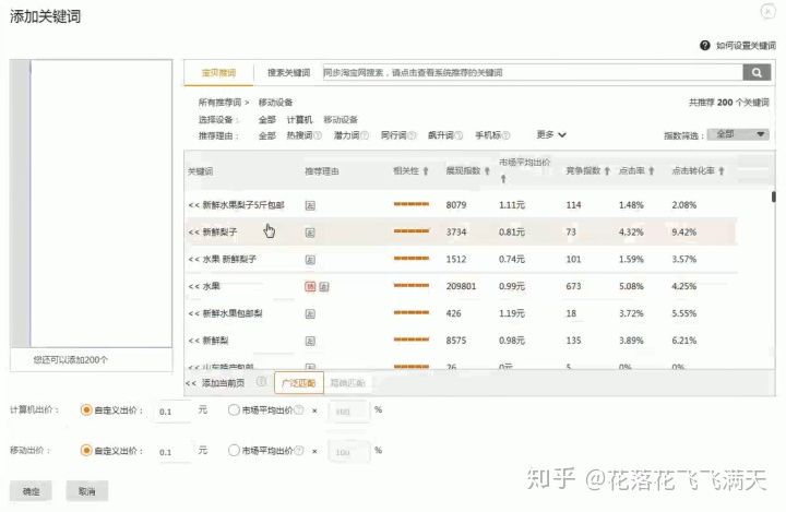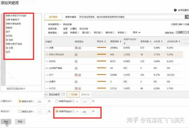 在这里面选择10个精准词,比如梨子是5斤包邮的,这就是精准词