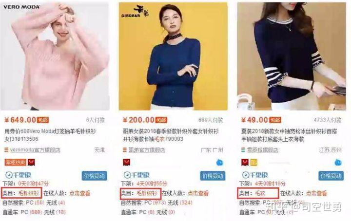 爆款布局:在秋冬款换季节点,八月底开始,很多羽绒服等秋冬款开始亏本争夺市场,为的是在市场大盘涨起来之前提前卡住坑位,这些商家往往打出反季清仓的亏本噱头,先稳住排位和销量,挤掉对手,哪怕前期亏损,大盘起来以后涨价也能赚回来,这就是老淘宝卖家的战略性亏损。当然不同类目的竞争方法多样,有的大类目非常残酷,需要大家实践操作获得经验。