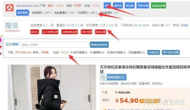 流量:千里眼、魔镜、店侦探的在线人数抓取是非常精准的,不相信的可以去刷新页面,看是不是在线人数增加了。根据自己产品作为参考,根据流量预估对手的流量(例如你一个小时20流量,在线人数多少)