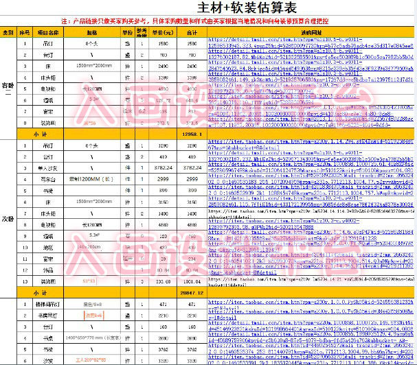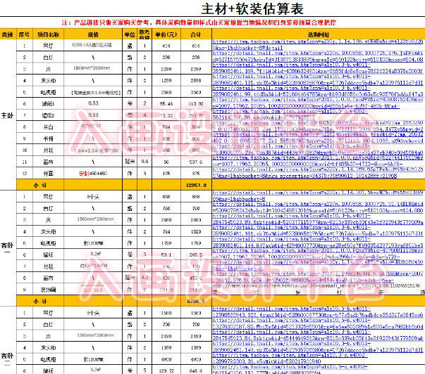 3、全透明:所有主材和软装都有淘宝链接都会给您(淘宝链接只做参考,可其他地方购买类似款式)