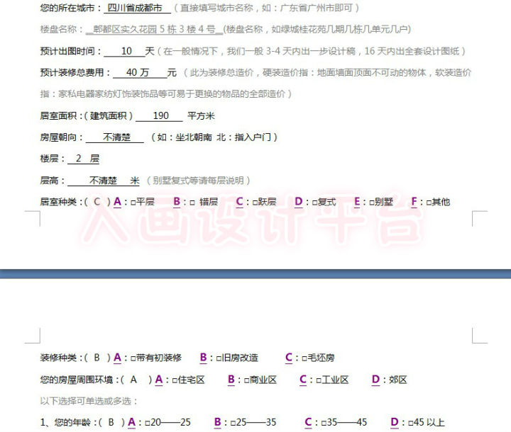 所以,跟买衣服的尺码说明一样,做设计之前会要求你提供一些信息。