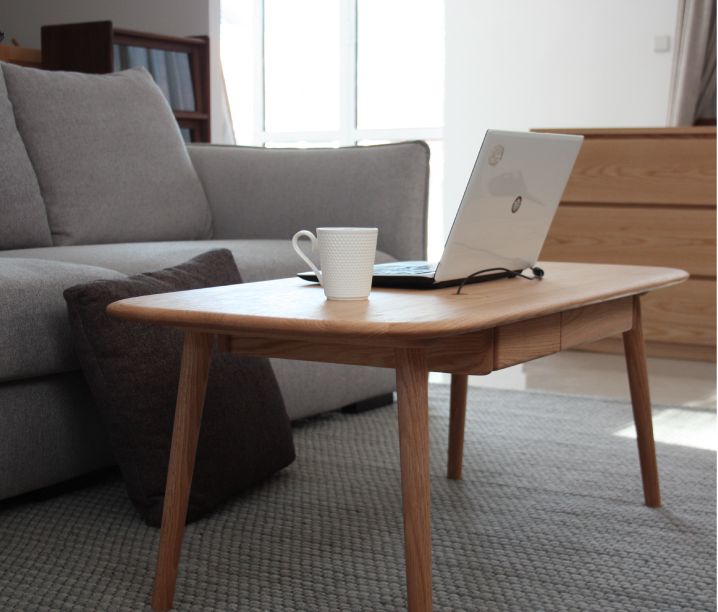 它不像传统茶几那么笨重,去掉了桌面下的收纳平台,换来的是轻盈。