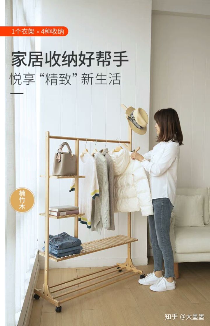 【厌式房间】倾斜衣架 现代简约衣帽架胡桃木北欧落地实木衣挂
