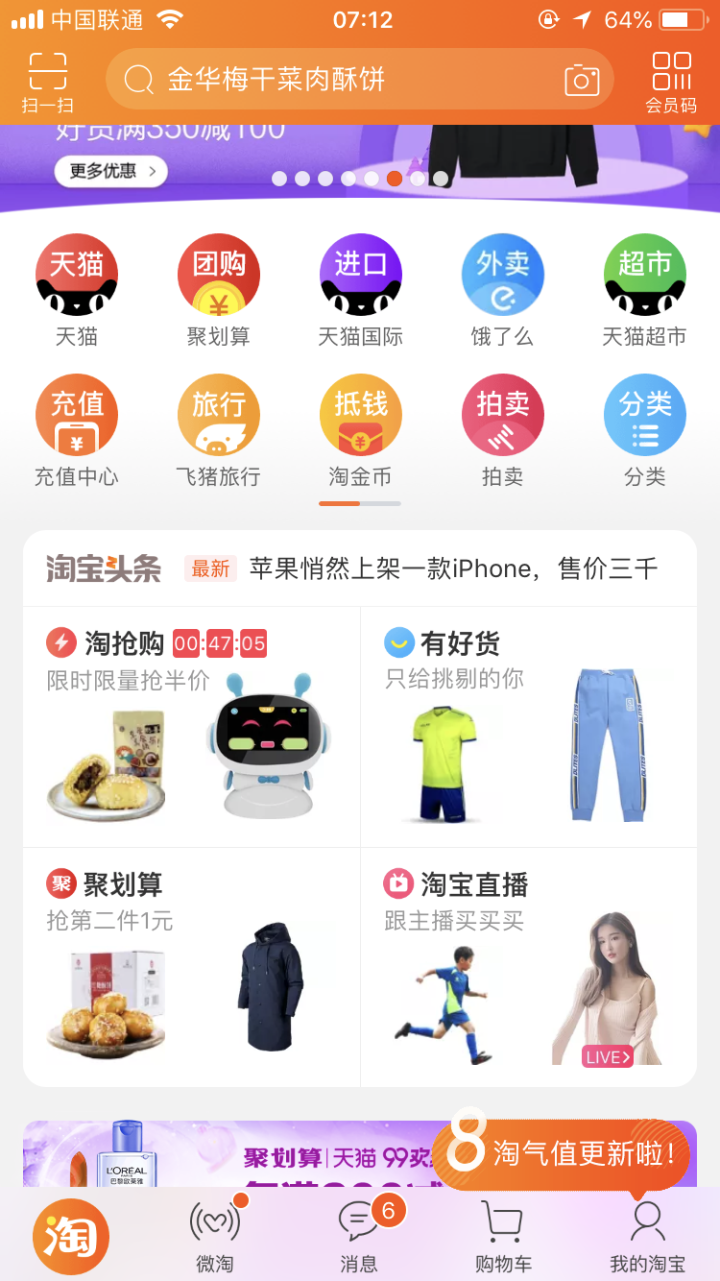 一,通过手淘首页的淘宝直播板块进入淘宝直播频道,见下图的右下角。