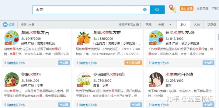 5、QQ群引流,有很多人会通过QQ群搜索产品,然后卖家可以自己制作QQ群霸屏(通过群地点达到全国地区覆盖),最后形成自家产品的宣传效果。