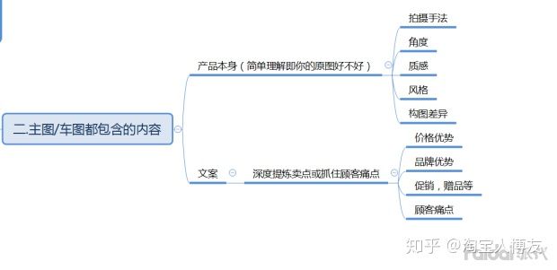 通过整理,一般图片包含了2大块面,产品本身(可以理解为你的原图),文案的提炼(即提炼你的产品卖点,或者顾客注重的点)我以导图的形式给大家整理。希望大家仔细看下图片。