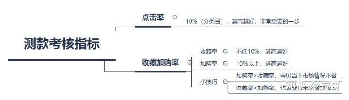(2)测款。测款依靠直通车来实现,考核指标:点击率、收藏加购率。不管是测款还是正常营销,做好直通车的关键首先是点击率,要分好主次先后顺序,切机一把抓,先一个个点做好,再逐步优化,首先就是下功夫做好点击率,然后再逐步做好其他指标。关于收藏加购的小技巧纯属个人经验,经供参考。