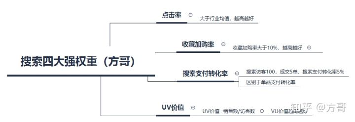 重点说一下搜索支付转化率,这个跟单品支付转化率有区别,单品转化中的访除了有搜索,还有其他,如:首页、购物车等,我们这个板块只能控制搜索的转化情况,因此就重点做这个指标。另外转化率的问题在新店阶段尤其是访客量巨少的阶段比较高影响不大,逐步控制就可以。收藏加购率大于10%容易起爆,现实操作过程中很多店铺的款都达不到要求,不过也没事,只要不太低都可以做出排名和带来流量,只是流量指数不一样。