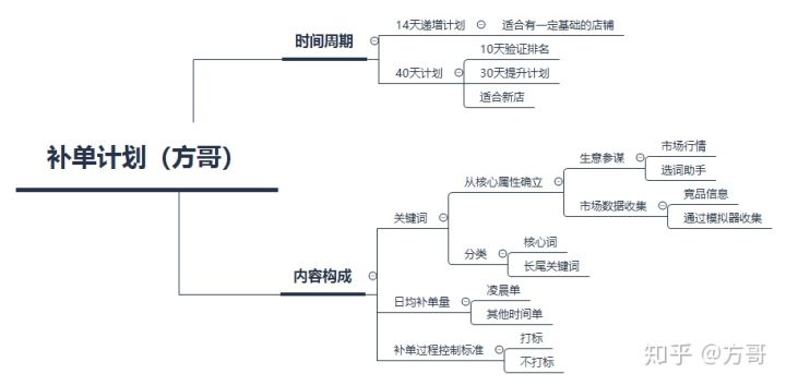 (4)补单计划。搜索核心算法优化除了上面所涉及的基础环节优化外,还需要调整核心指标,主要通过补单来实现,将能够干预的数据全部做到优秀水平,如点击率早期可以部分介入,收藏加购率在测款阶段需要真实数据来支撑款,但是到了补单阶段,可以适度介入操作这数据,然后是搜索转化权重。这些都需要囊括到补单计划中来实现。补单计划主要包含内容为: