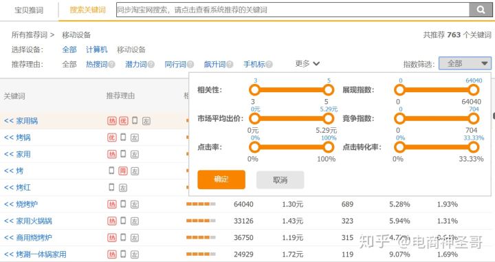 以上说的,当然都是分PC端和无线端两个,在此同时必须要参考整体行业的数据。我们一般通过直通车-工具-流量解析-数据透视来查看,这下面我给大家展现的是“烤锅 ”选择过去一周得到的数据参考,如果想要知道宝贝的受众能力和优质程度,我们需要做到超过行业水平,这样才能够更好的让系统看到我们的宝贝,给宝贝增加的权重和质量分更高。