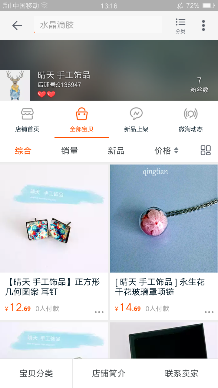 店铺主要是卖一些自己做的小饰品什么的,由于刚起步,店铺粉丝都是店主一个个亲手拉来的,真的是惨不忍睹啊,东西呢也没卖出去几件,下面,一大波图片来袭,