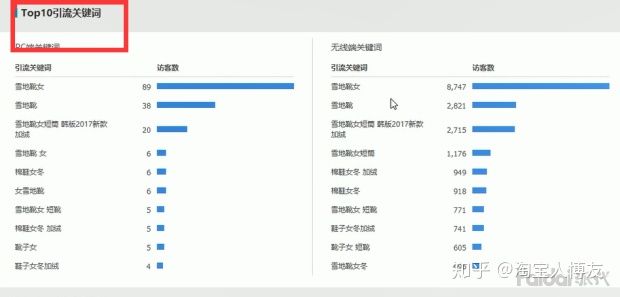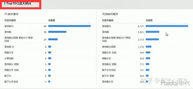 对手成交词和流量词可以通过生意参谋后台的商品店铺榜查看,在搜索框里面直接搜索雪地靴,排除活动起来的流量和直通车的,只选择看搜索起来的关键词,这样就能够知道对手的用的词哪个成交和流量最多。