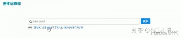 大家打开后台的搜索关键词查询,比如说我想搜雪地靴女这个关键词,系统就会显示出来这个关键词的数据情况,