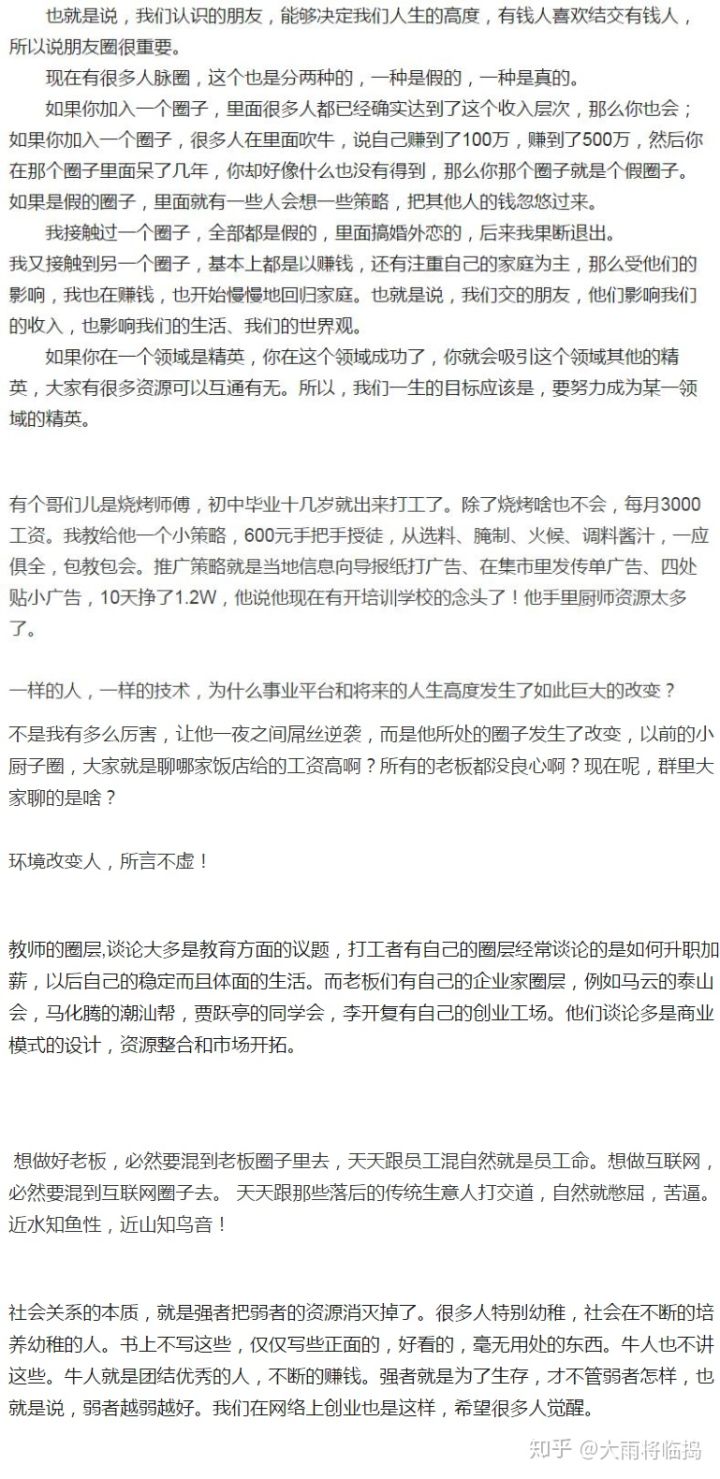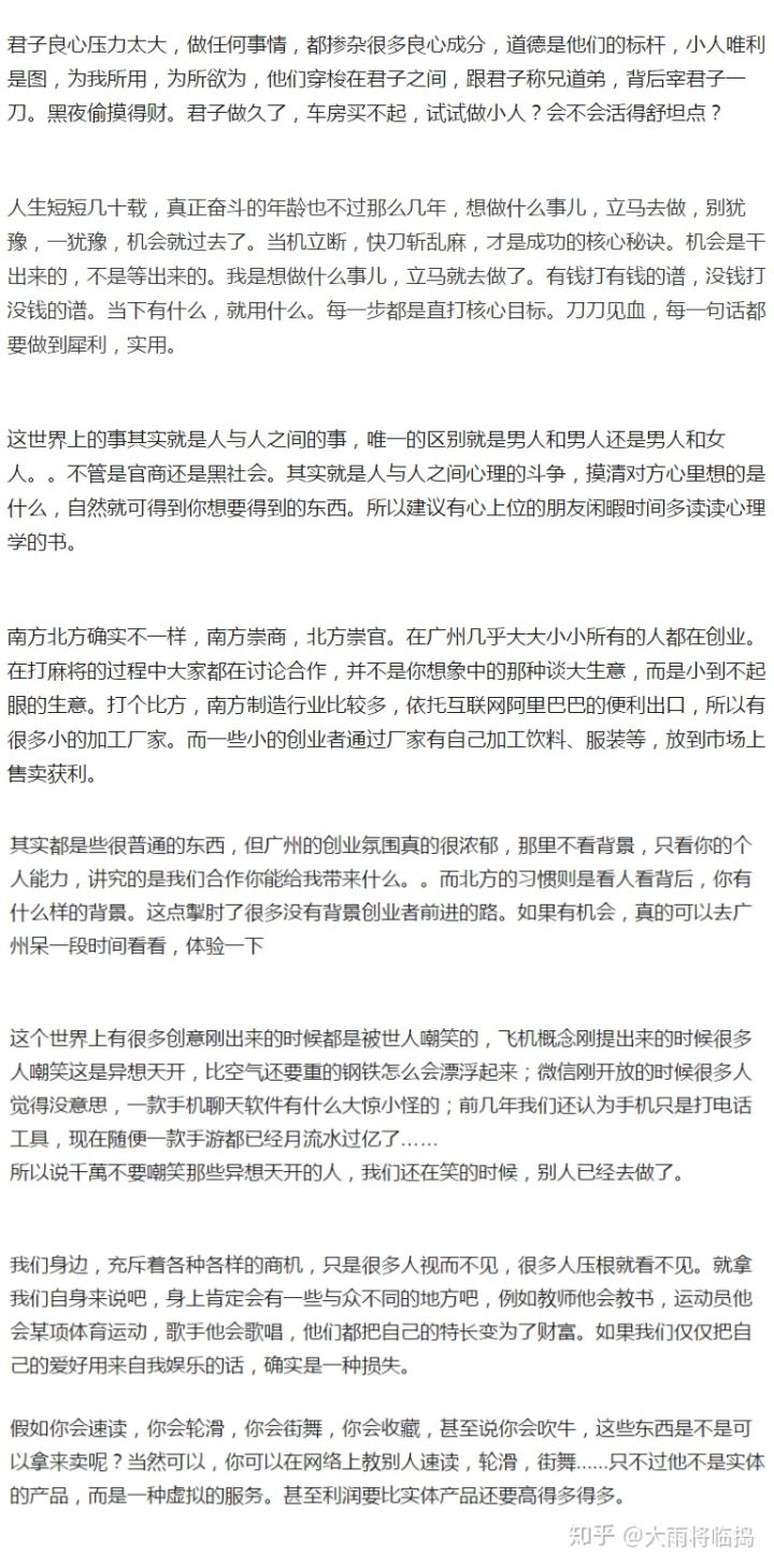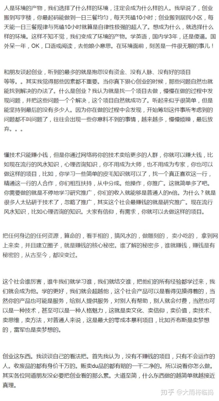 为什么呢?一个创业者、一个成年人最简单、最基本的“透过问题思考本质”、“根据本质主动实践、通过实践分析总结”三个能力都不具备,你能指望这类人在哪个行业领域、或者职场有所建树?基本白瞎!