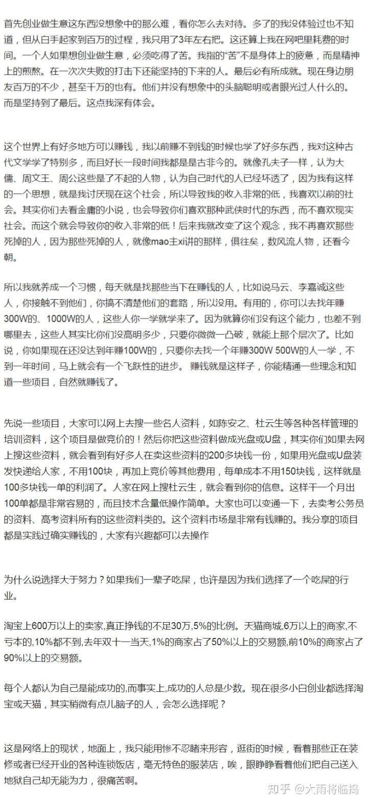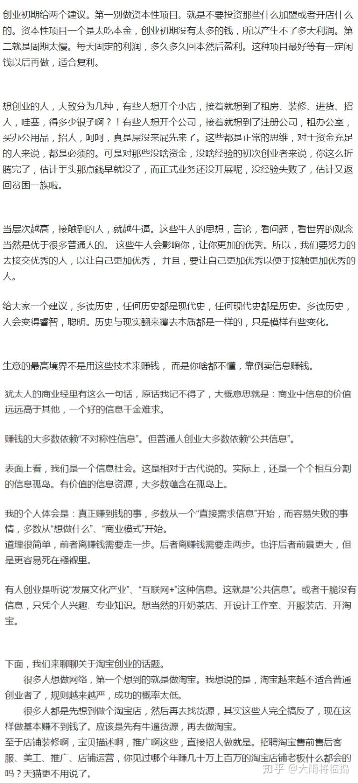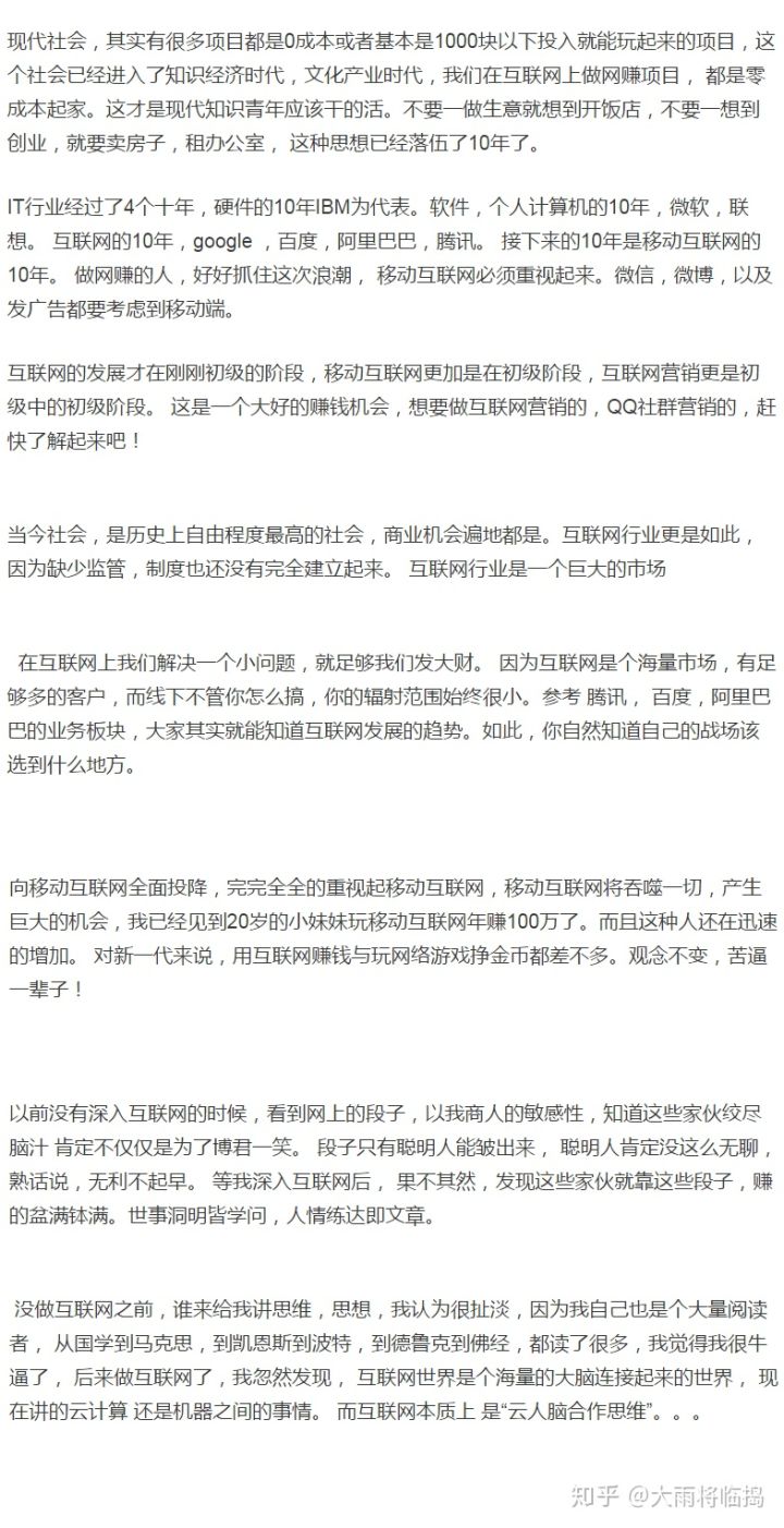 为什么呢?一个创业者、一个成年人最简单、最基本的“透过问题思考本质”、“根据本质主动实践、通过实践分析总结”三个能力都不具备,你能指望这类人在哪个行业领域、或者职场有所建树?基本白瞎!
