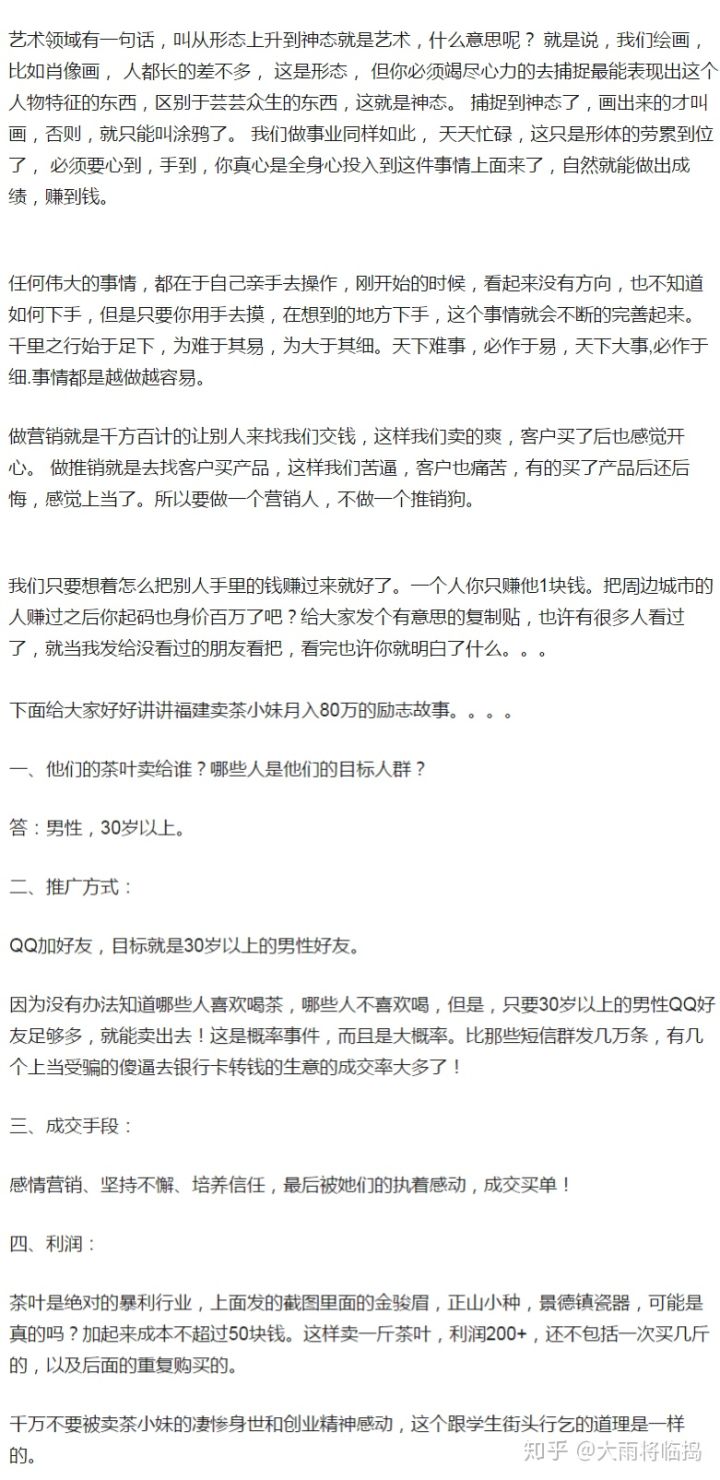 很多微商卖不出东西这是大家都知道的,有想过为什么?首先,他们的货物种类太少,客户群体本来就不多,其次,他们没有什么太好的销售路子,都是在朋友圈卖东西,朋友圈本来就那么多人,怎么可能销量好呢?we做淘宝店上传万件货,客户群体是几亿的淘宝买家,你觉得那个销量好?