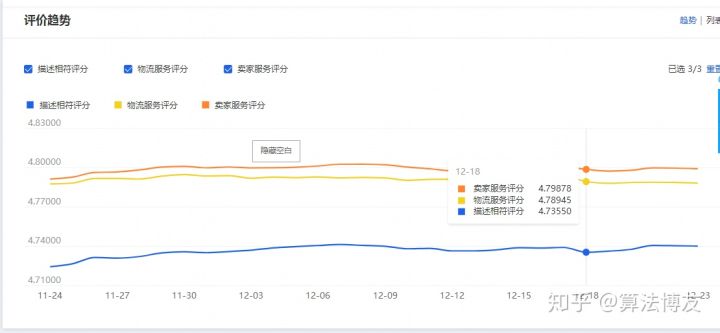 很多人都是一直在关注中差评,但是却忽略这个DSR评分,因为他是动态变化的,所以你放心,除非你一下子绿了,否则的话,单天的上升或者下降是没有什么影响的。真正影响的是持续的上升或者下降。