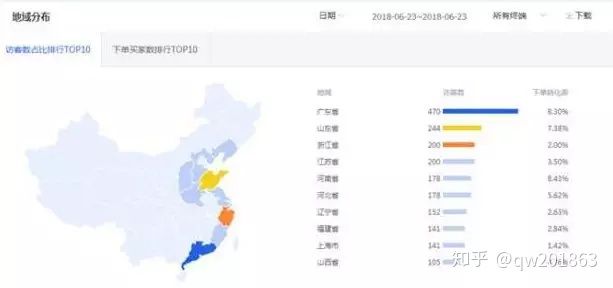不同的产品对于不同的地区消费者喜好度是不一样的,例如:羽绒服,如果10月份你选择广州,上海等地区,那投放肯定是无效的,投放山西,陕西,等位置肯定是收效甚微的,投放东北部分区域,效果肯定更加,因此,应该针对产品本身去研究圈点出各个省份点击与转化最高的城市去投放。根据后台数据消费者地域分布来调整直通车地域投放。