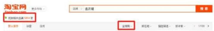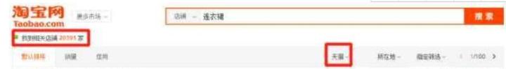 可以直观的看到,截止到2018年11月28日,淘宝上售卖连衣裙的店铺共计1168826家。