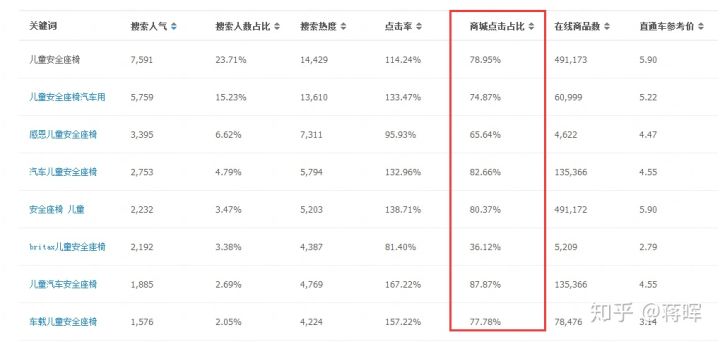 以安全座椅为例,我们可以看到,他的商城点击比,达到60%、70%、80%,平均下来70%多,这个产品去做的时候,如果是C店,机会很小。因为市场很大,利润也很大,竞争对手很多,而且大家都开天猫。那如果我们现在用一个C店去开的话,这个市场肯定是很难去抢的。