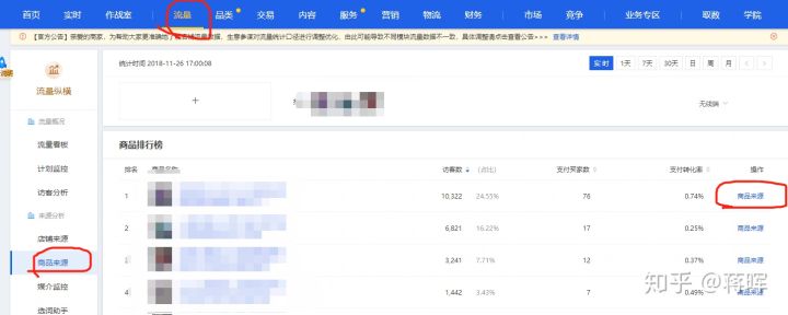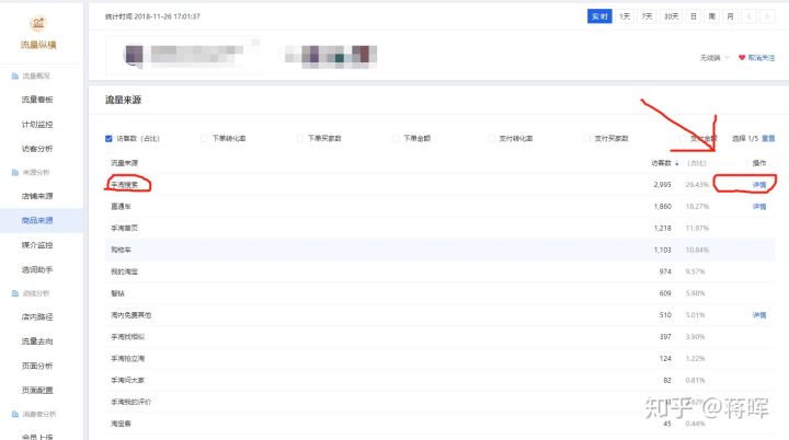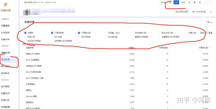 可以看到单品每一天各个流量渠道的非常详细的情况,流量和转化情况。其中重点看手淘搜索这个来源的,前面通过找关键词等等都是为了帮助我们获得搜索流量,只有搜索流量相对稳定了之后,其他渠道的流量才能慢慢进来。