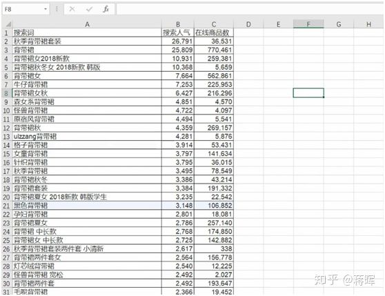 然后建立一个Excel表格,将背带裙相关的搜索结果都复制到表格,尽量多整理一些,