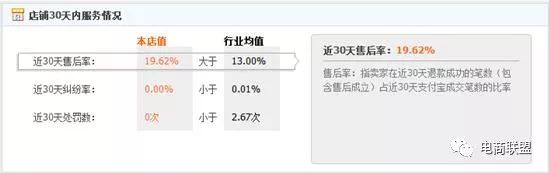 1.近30天售后率 指卖家在近30天退款成功的笔数(包含售后成立)占近30天支付宝成交笔数的比率。