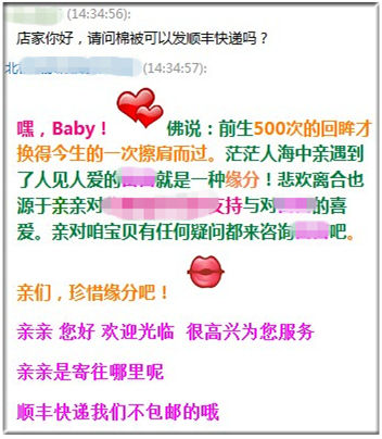 淘宝各个商家卖棉被为什么不支持顺丰? 爱开淘 三月 15, 2019 业务发展 9 评论 1902 围观 这两天上淘宝买棉被时候发现,咨询过3家不同的天猫商城卖家改发顺丰邮费多少,商家们都不约而同地回答我不与顺丰合作,所以不可以像其他商品一样加点邮费发顺丰。 请问为什么?