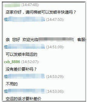 天天发顺丰的卖家告诉你,如果发棉被这种货,可不是加一点钱哦。