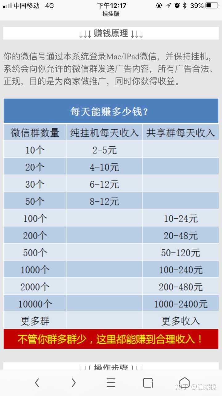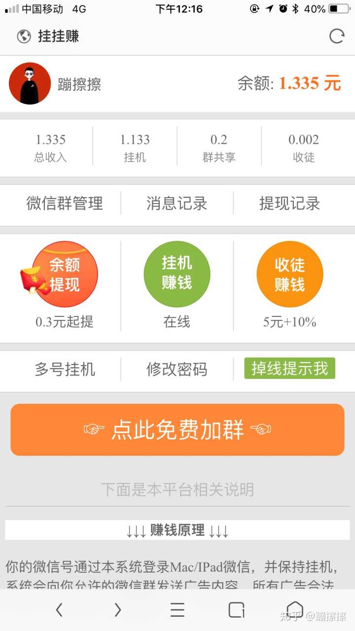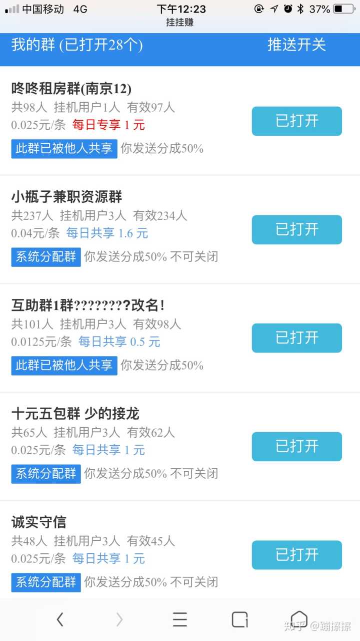 一、挂机赚钱 这个是根据群的数量而定 的,后台挂着就可以,一天轻轻松松五块, 十块就到手了。