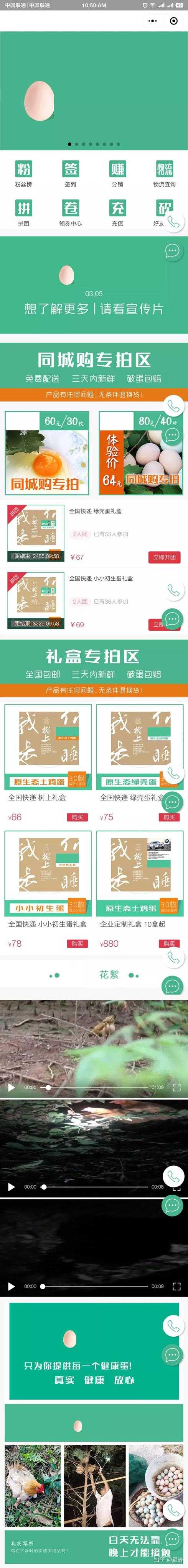 「XX鸡蛋王小程序商城」主要功能:商城直销、二级分销、拼团、积分系统。商城装修使用图片、视频均原画呈现,不加修饰,乡土味浓厚,给人淳朴、真实、可信的感受。