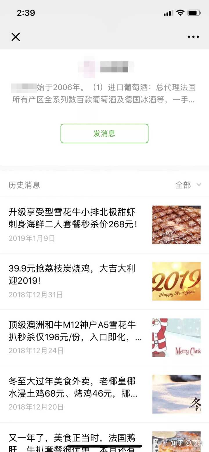 关于「留存」:本案例用企业服务号沉淀流量(用户在扫小程序码付款后现场提醒关注服务号),但服务号从不原创内容,只推送促销图文广告,最终也是引导至小程序商城下单交易,如图。