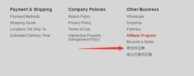要寻求成为某网站或平台供应商,可注意其网站页头或页尾处的中文(页尾处更多),一般会有”寻求供应商”或类似字样的链接.