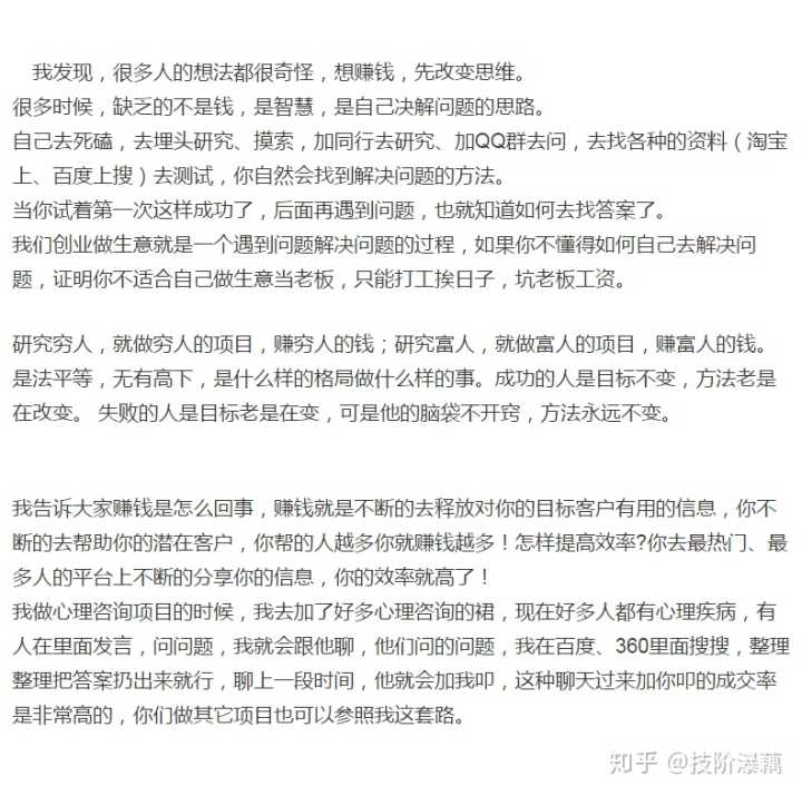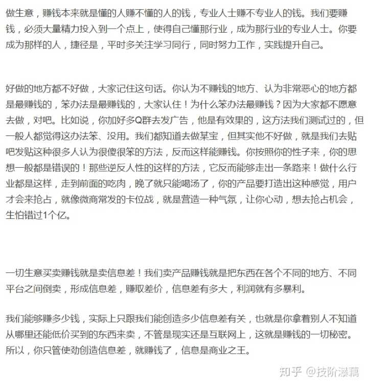 赚钱是有方法,有套路的,这是一门技术,比如那些自媒体大V写作为什么那么厉害?因为他的写作是套路化,方法论化的。作为普通人你没有那个本事,你必须模拟高手,模拟会赚钱的人的套路,思维模式。然后不断的圈流量,流量是生意的本质,任何生意只要有流量就有钱。
