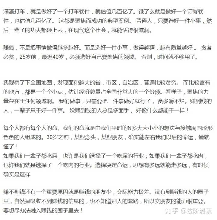 答案一:身边的人创业发了,我又不比他笨,假如我创业,必定不会错。