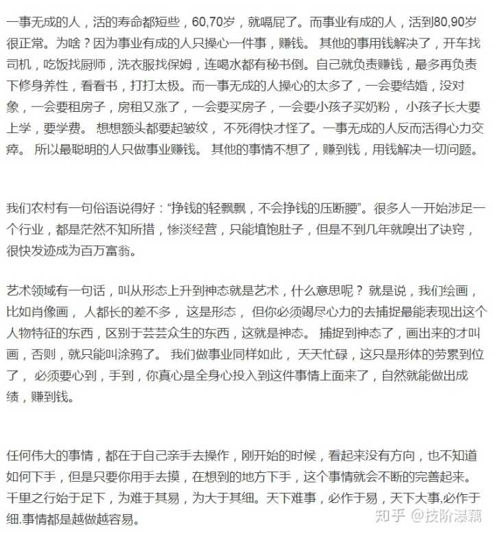社会上能够赚到钱的能够成功的毕竟是少数,大部分人寿的都是平庸的教育,他的脑子里面的理念还不清晰,创业只要拼命不断的拼命他就会成功 严格要求自己,控制住自己,工作并不是为了老板为了别人而是因为为了自己,加倍的努力他一定会成功