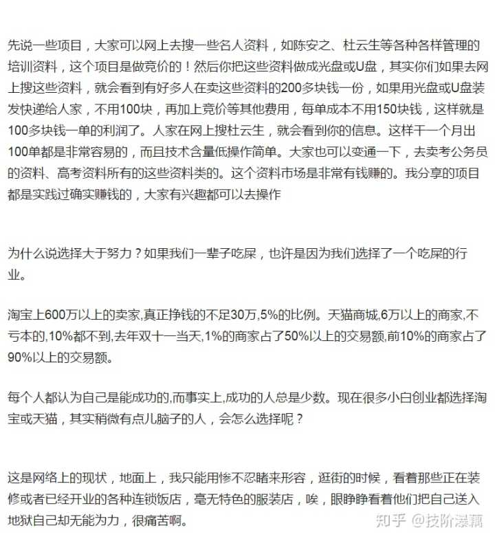 答案二:我都年纪不老小了,人总不能打工一辈子吧?现在手头这个项目正好创业!