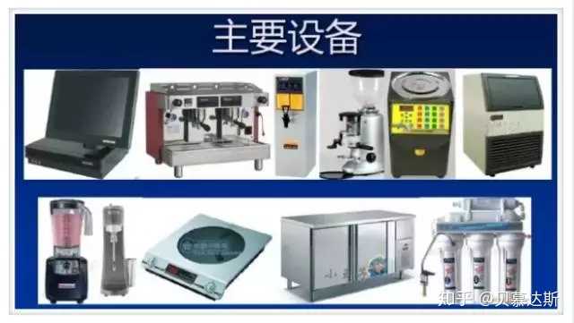 奶茶店免不了一些必 备设备:包括空调,饮水机,收银机,电磁炉,榨汁机,封口机,冰柜等,还有制造奶茶东西,包括量杯,搅拌勺,保温桶,托盘等等。要把涉及到奶茶制做的涉及到的设备都买齐。