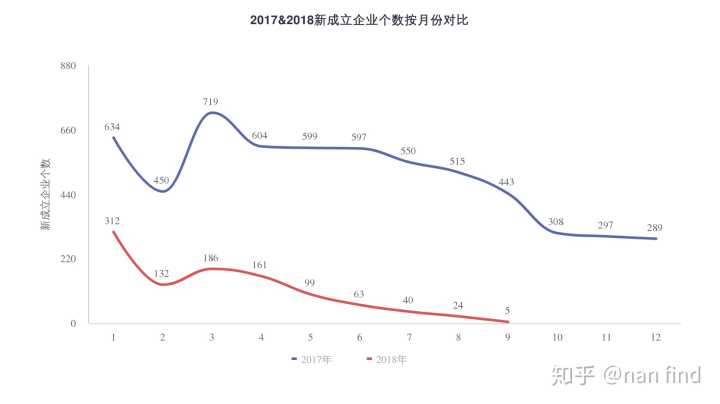 根据IT桔子数据,2018年前三个季度,共有1022个企业新创,远低于去年前三季度的5110个。从月度来看,创立企业最多的一月共创立312家企业,大致与去年创立少的月份相当。