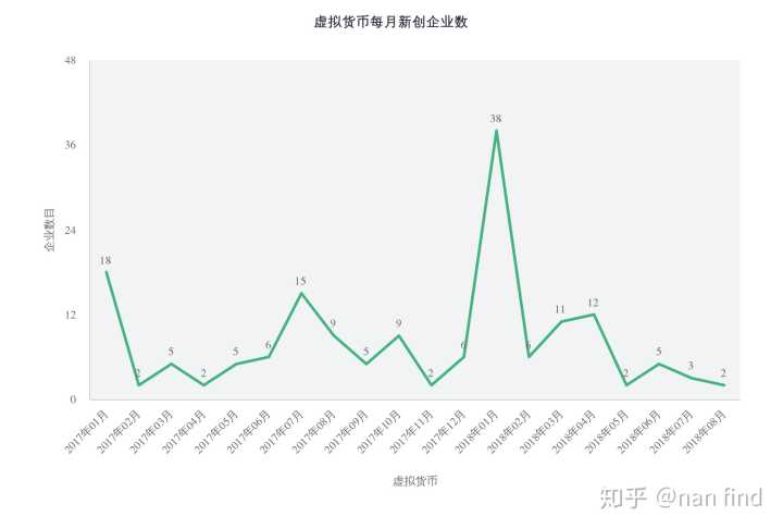 我们对金融类细分行业进行了进一步分析,可以看到2018年金融行业新创企业有近一半(50.97%)进入了虚拟货币这一细分领域。
