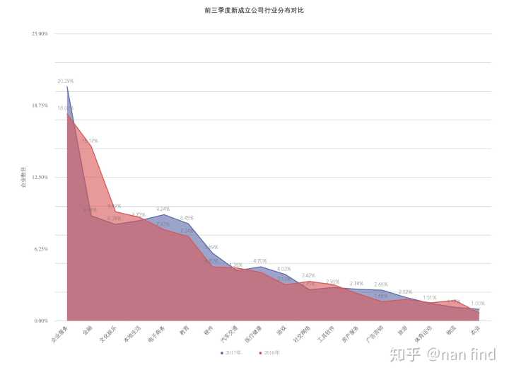 我们将2017年和2018年两年前三季度的行业分布进行了对比,有如下发现: