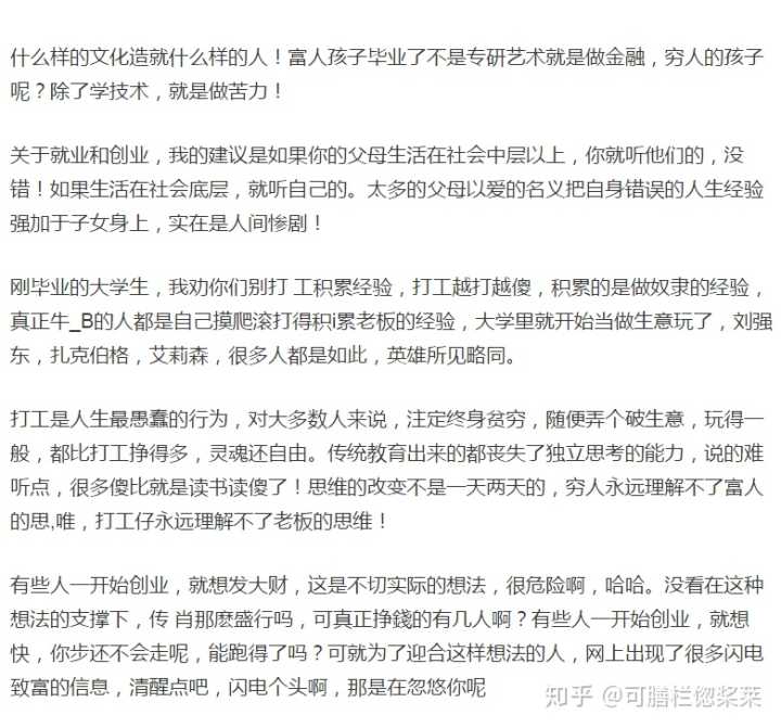 其他网上那些,创业是为了锻炼自己的,是为了帮助社会的,不是为了钱的,就是假惺惺的骗子。
