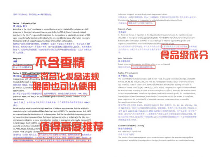 大量的微商产品夸大功效,就像上篇文章提及的XX牌红樱桃唇膏,它发布的SGS第三方配方毒理性检测报告,提及到“是0岁宝宝都能使用的唇膏,不含香精,符合化妆品法规,眼周也可以使用,值得高度推荐,使用食品级成分。”等针对消费者痛点的字眼,让我不禁怀疑它的真实性。