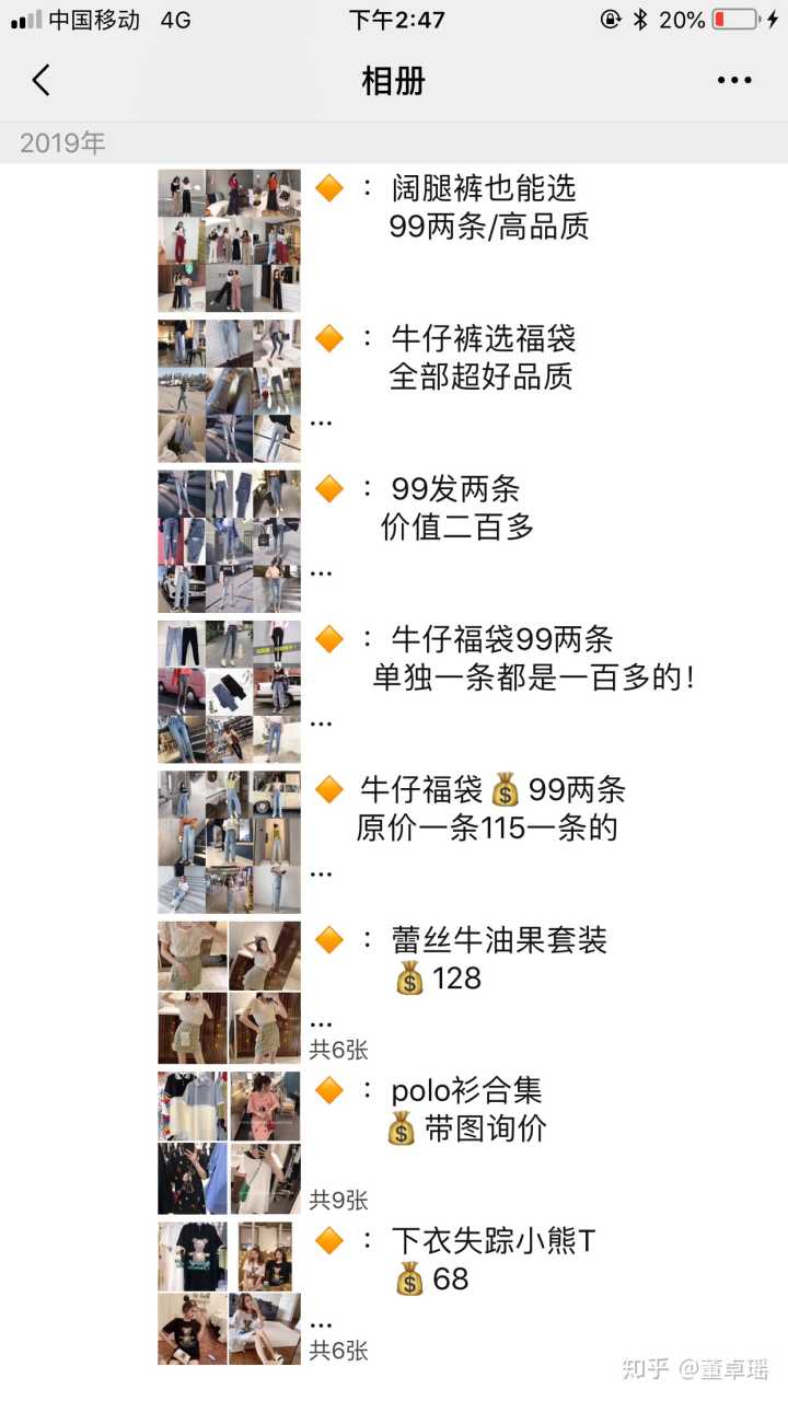 朋友是做微商的,在她家买过很多很多衣服!真的都好好看,她有很多网红工厂的渠道,所以会卖一些tb网红店里的衣服,价格比tb上面低很多,tb上卖200+rmb,她家不到100rmb,有的甚至才几十,而且真的是同一个工厂出的货,我对比过,和网红店里卖的一模一样!每款衣服她也就挣十几块钱,主要走量。她也会卖其他东西比如小ck的包、墨镜、帽子和一些奢侈品,是工厂原单货,或者高仿货。是原单还是高仿她都会在朋友圈讲的很清楚,不混卖,算是很良心了。