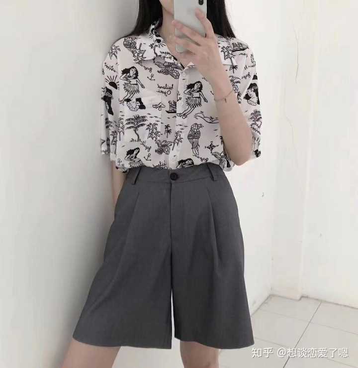 虽然看起来很简单,但是却是我分享的这些当中最需要动脑子搭配的了,搭配多了我发现一个很好看的搭配方法,就是宽松的衬衫配上短裤或者短裙超级好看!慵懒随性的好看