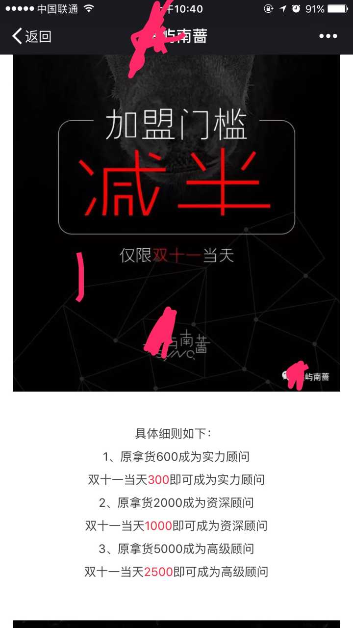 首先给咱们分享一个微信朋友圈营销事例:“有个人打算做微信营销,就在微信朋友圈卖东西,开端的时分彻底没有人理睬他,但他每天坚持上货、摄影、修图发到朋友圈,坚持了3个月,功夫不负有心人,总算有了回报:所有的人,都把他拉黑了。”这当然是个搞笑段子,好笑之余,你或许想不到,许多所谓“微商”的训练都是从这个段子开讲的,许多人都是从这个段子开端,走上了微信朋友圈的传销之路。从前的“朋友”俄然成了“生意人”可能许多人有跟我一样的阅历。开端的时分,微信朋友圈都是一些很熟悉的朋友在晒各种生活照,可是不知道是哪一天,俄然就有一位朋友说“署理”了某品牌的产品,并常常发一些比如“咱们都是朋友,有需求来我这儿拿货,进价给你们,我走个量!”的朋友圈信息。开端我也没有当成个事,究竟为了生活,干什么都是养家糊口。可是后来的剧情开展有点超乎我的意料,我这朋友的“生意”火了!早上发一款产品图片,还没有到正午就又发一条朋友圈信息,各样苦楚的求饶,求求咱们别订了,没有货了,送货的小腿都跑断了!再过几天,好家伙,这朋友把银行卡收到的汇款记载晒了出来,几天之内的交易额居然达到了十多万!这个时分,我坐不住了,辛辛苦苦一个月拿几千元的工资,人家几天就是十多万的收入,我也要干这个!犹豫一再,拨通了这个良久没有联络的朋友电话,一番交流,他却是直白:“甭说我没给你机会,你做我下一级署理吧!”……你会成为下一个署理吗?当朋友让我做他下一级“署理”的时分,我并没有觉的有什么异样,可是我条件反射的问了一句:“需求什么资质吗?”。就是这一问,阴错阳差地竟让我接触到一个黑暗生疏且可怕的微信朋友圈非法传销的世界。在接下来的时刻,他给我讲了一个段子,这个段子现在现已风行网络,也正是最初我讲的那个段子。后来的剧情就简略了,罗里吧嗦一大堆,就是讲微信朋友圈并不像幻想中那么简略,其实很讲究战略和方法。归结到最后就是:兄弟,我看你也很有兴趣,要做咱们一起吧,你先交一万元……一说到钱,作为屌丝的我立即神经紧绷了起来,当即表明要再考虑下。这时分那个朋友也好像发觉到我的畏缩之意,当即表明先带我了解下“行情”,至于做与否自己决定吧,我就这样进入了一个所谓的“XX创富联盟群”。在这个群里我每天接受到的轰炸就是:一个人的力气是有限的,你一个人不能把产品卖给所有人,最好的方法就是让所有人都成为你的署理,咱们现在树立的是商业领域内最高效的渠道,咱们不是没有产品,咱们能够卖任何产品,能够卖面膜、茶叶、珠宝、黄金,咱们现在什么都不缺,就缺人,你会成为下一个署理吗?……这是传销吗?在阅历几日打了鸡血的轰炸后,我清醒了过来,这不就是传销吗?可是后来的开展又让我置疑起来,或许他们并不是传销。他们开端卖面膜了,由女士组承销,开端在全国经过朋友圈接收署理,署理的面膜据说是某个韩国品牌。从群里他们分享的材料来看,各种署理协议,品牌授权,一应俱全。可是后边什么情况我就不知道了,因为我并没有交纳署理费用,在一次会议中被清退了!被清退的遭受反而引起我的好奇,我居然鬼使神差的开端研讨起微信朋友圈营销了。开端的时分为了入门,我乃至花了9.9元从淘宝购买了《微信朋友圈营销课程》,然后又张狂地从网上查找一些材料,在微博上收听一些所谓微商营销专家的微博……总算搞理解了一些。这些所谓的微信朋友圈营销,就是利用朋友圈单向交流的私密性,经过接收署理来投机的。其组织形式和传销极端相似,署理区分许多层级,每个层级拿到产品的价格都有不同,卖产品是幌子,其实都是赚的所谓署理的钱!这和传销之间就多了一个产品而已……光鲜朋友圈表面下的罪恶究竟是谁在炒作微商的概念?是谁在夸张微信朋友圈的营销力气?富丽堂皇的概念背面究竟隐藏着怎样的一群肮脏逐利的诡计小人?笔者给咱们剖析下,这些诡计者是怎样把善良的朋友们的拉入圈套的。1.国产的不好吗? 你觉得泰国的水平比我国高吗? 泰国的人都长得很白吗? 2. 微商确实有许多乱相,但那个行业没有呢? 不能一杆子打死。 3.尽管我不喜欢棒子,但只少人家棒子比泰国实力强点吧,泰国是旅行国家能有什么生产力。 你就算不支持国产,好歹也选个韩美日欧吧。